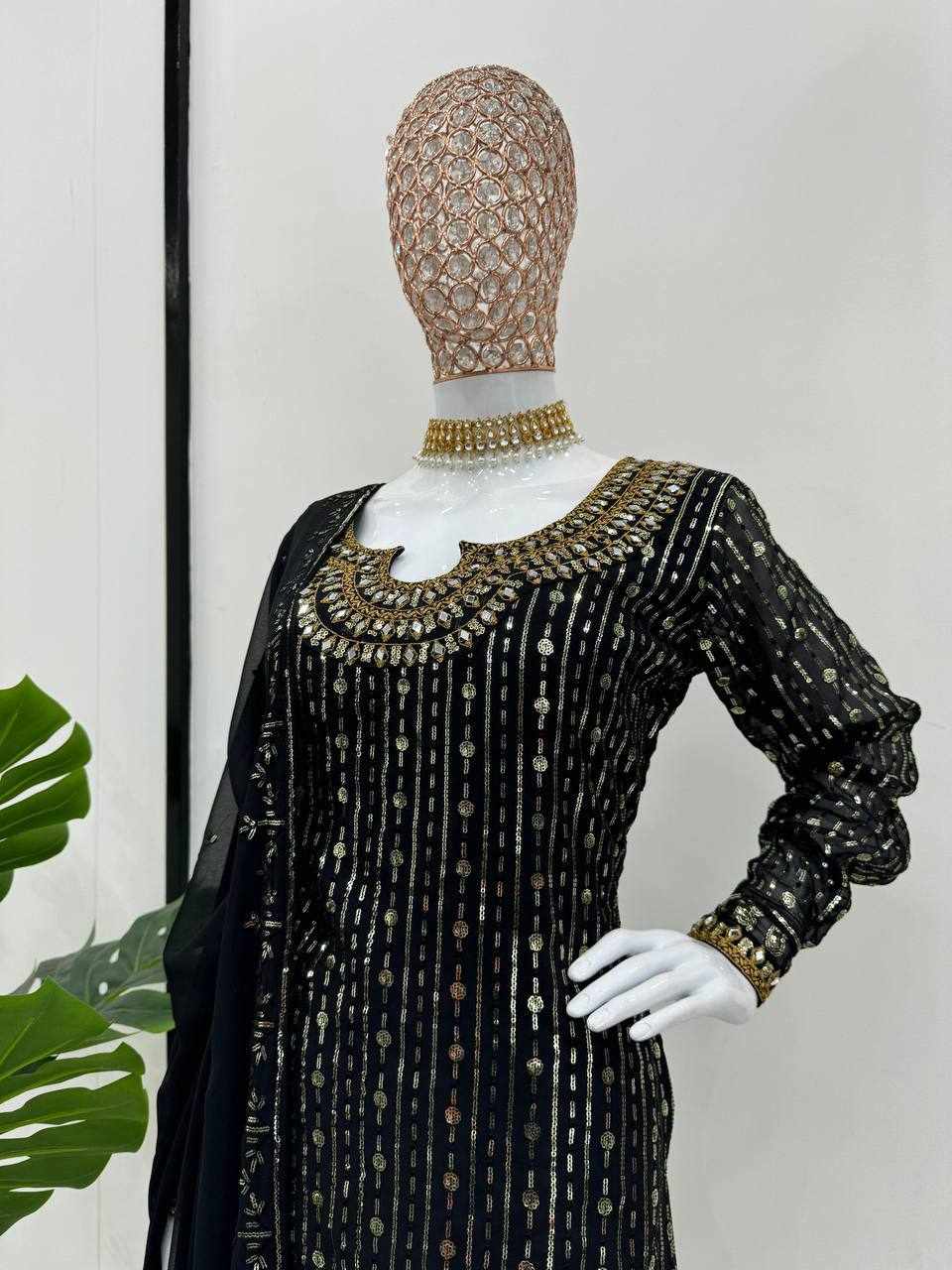 Premium mirror detailing with elegant embroidery gives you a graceful, trendy, and elegant look.