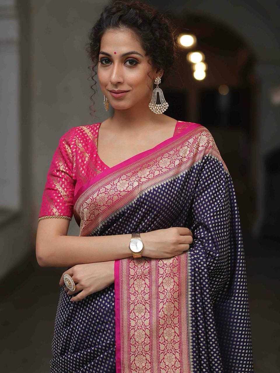 Design: Beautiful rich pallu with intricate jacquard work woven all over the saree, offering a graceful and luxurious look