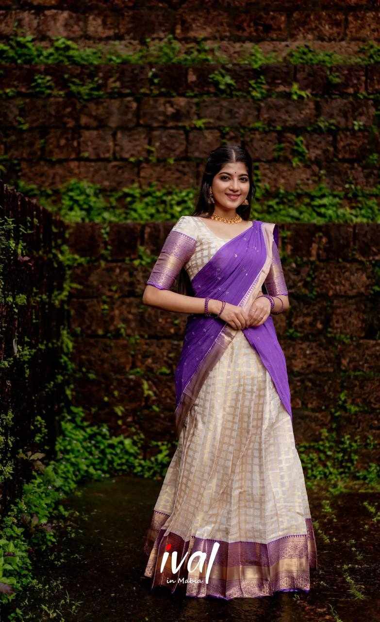 KP-W 352 Kanjiveram Silk Purple Colour Half Saree