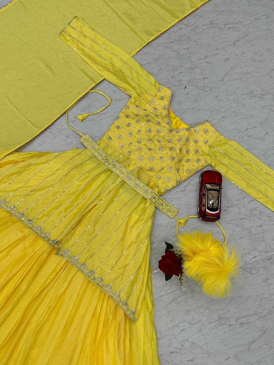 | Name : | Pc 434 Yellow Chinon Sequence Work Lehenga |