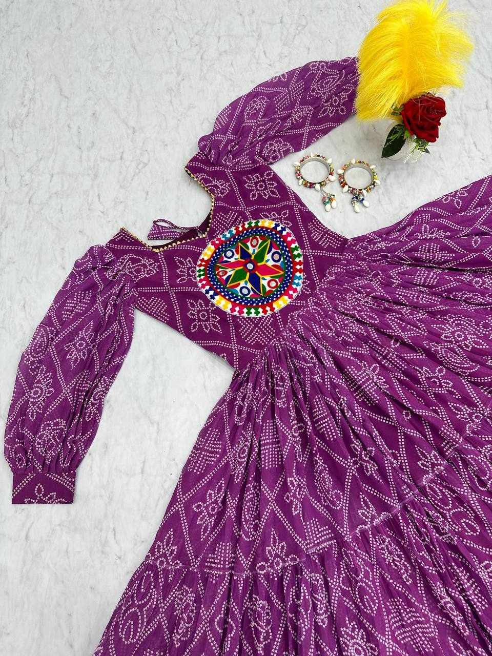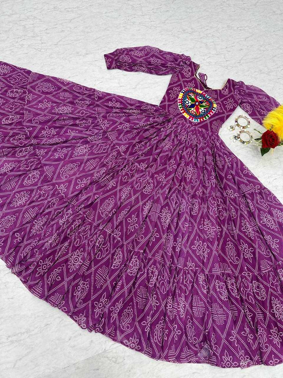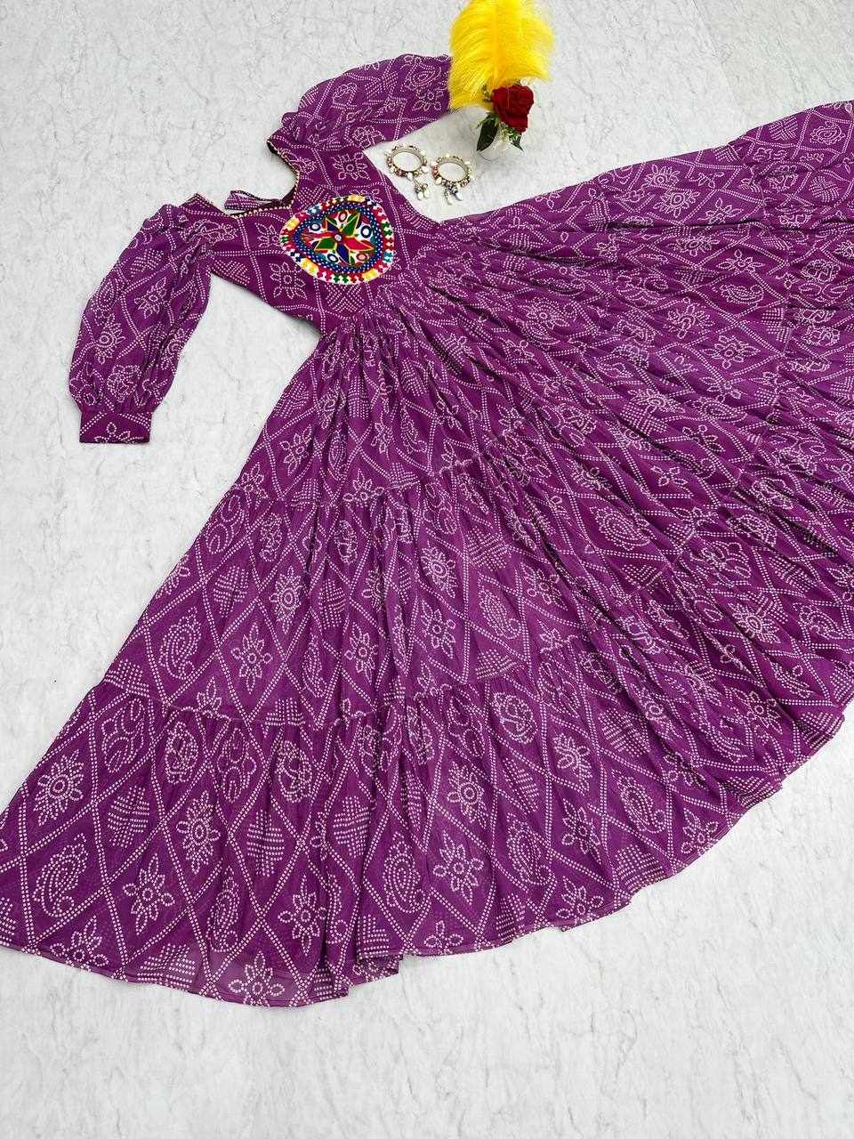 | Name : | PC N02 Purple Bandhani Print Gown |