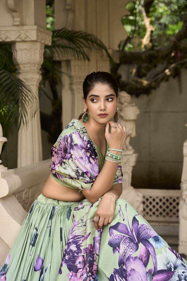 PIYU 26-1 Silk Digital print Green Lehnga